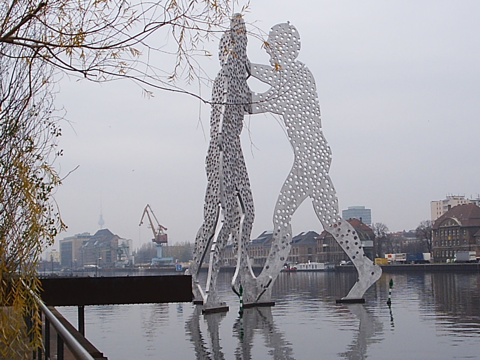 Die Skulptur Molecule Man (1999) von Jonathan Borofsky scheint auf der Spree zu schweben. Es handelt sich dabei um drei 30 Meter hohe Männer aus Aluminium, die sich gegenüberstehen und in der Mitte treffen, was das Zusammentreffen der Bezirke Kreuzberg, Treptow und Friedrichshain symbolisieren soll.