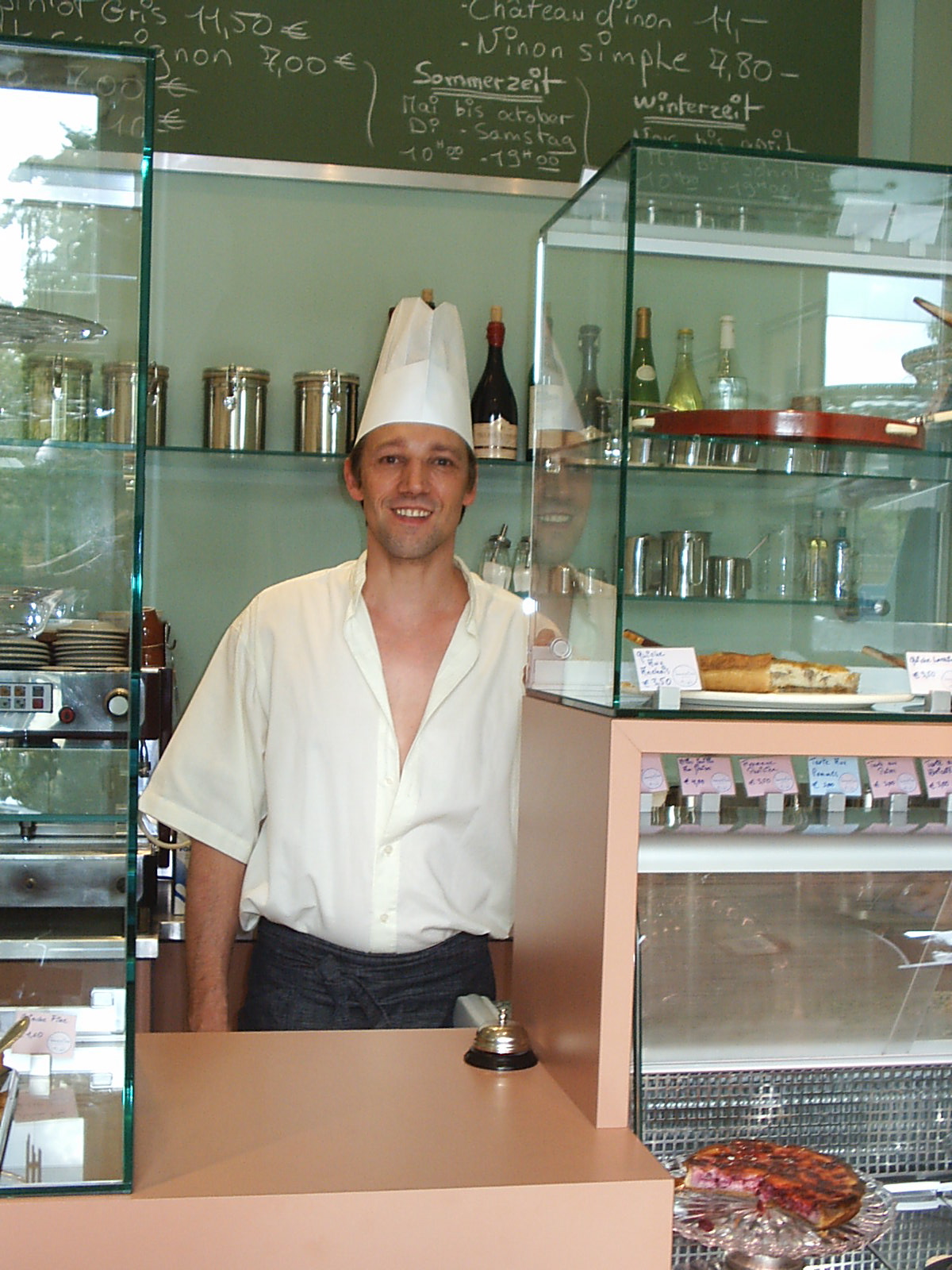 für alle interessierten Besucher einen Druckvorgang vorführt. Seine 200 Jahre alte Presse kommt aus Paris, so wie er.